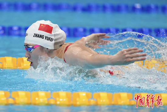 中国游泳选手张雨霏在比赛中。中青报·中青网特派记者 刘占坤/摄