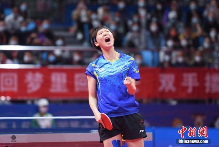 9月25日,第十四届全运会乒乓球项目女子单打金牌赛在延安举行,黑龙江队王曼昱 4:0胜河北队孙颖莎夺冠。 中新社记者 王刚 摄