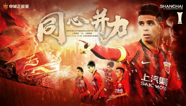 足协杯半决赛将上演备受瞩目的“上海德比”,11月1日上海海港俱乐部官方发布对阵申花的赛前海报,主题是:“同心并力。”