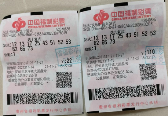 11月27日,快乐8第2021317期开奖,开出的中奖号码为:03、04、12、16、17、20、23、34、40、45、48、49、51、56、64、73、75、77、78、80,当期“选十中十”全国仅中出1注,单注奖金为500万元,为贵州彩民揽获;“选九中九”中出21注,单注奖金30万元,贵州彩民收获10注。中奖彩票是两张复式票,一张是22元“选十”复式票,除获得“选十中十”1注外,还获得“选十中九”10注,其单注奖金8000元;另一张是110元“选九”复式票,除获得“选九中九”10注外,还获得“选九中八”45注,其单注奖金2000元。自此,两张彩票共计获奖817万元。中奖彩票售出于黔南州罗甸县龙坪镇大圆盘旁福彩第52040636号投注站。
