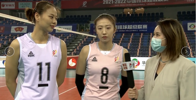 北京时间12月11日晚,2021-2022中国排球超级联赛女排全明星赛在广东江门举行。全明星赛首场比赛开始前,红蓝两队的队长丁霞和龚翔宇接受了短暂采访。