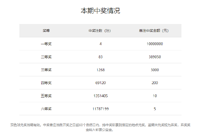 22:20 本期一等奖开出4注,单注奖金1000万元,4注头奖分落江苏、浙江、湖南、四川4地;二等奖开出83注,单注奖金38.9万。本期双色球销量为4.47亿元,计奖结束后奖池余额10.79亿元。