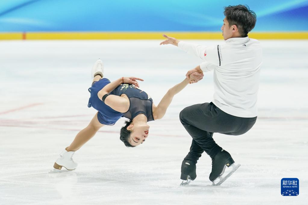 1月5日,隋文静(上)/韩聪在训练中。