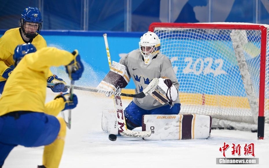 1月29日,参加北京冬奥会的瑞典女子冰球队在五棵松体育中心进行赛前训练。 中新社记者 毛建军 摄
