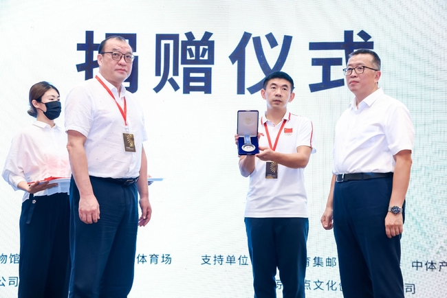 国家体育总局体育文化发展中心副主任、中国体育博物馆(中国奥林匹克博物馆)副馆长吉伟东,光大文化投资有限公司总经理郑颖宇,共同接受捐赠。吉伟东副馆长代表中国体育博物馆向李佳军、李昕颁发了捐赠证书。