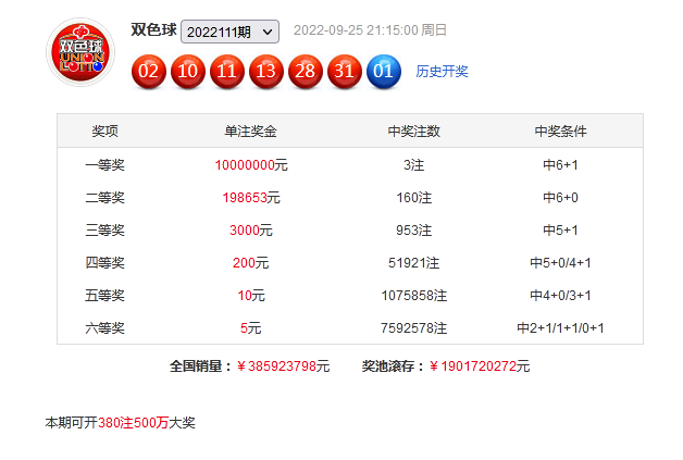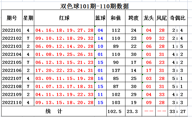 上期回顾,双色球22110期开出奖号:红球09 13 15 18 20 28,蓝球15。当期红球号码大小比为3:3,三区比为1:4:1,奇偶比为3:3。本期红球开出重号13,未开出连号。蓝球开出大奇数球15。