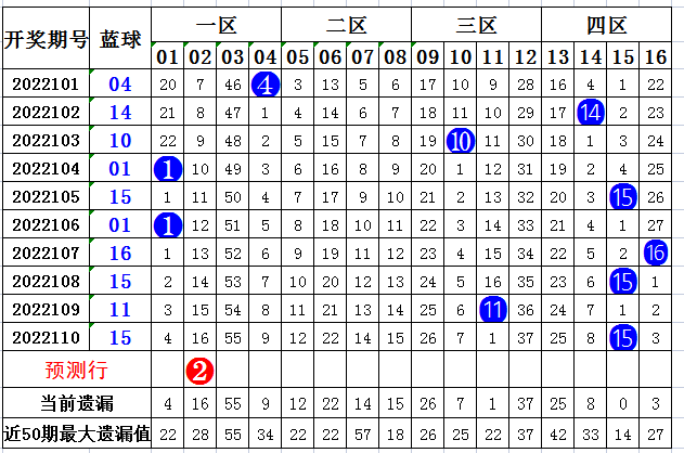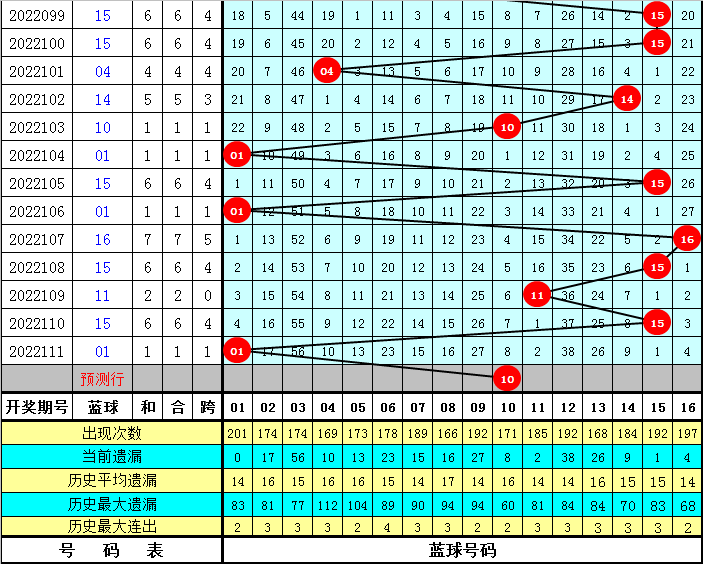 上期开出蓝球号码15,十期中出现总次数为3,近十期开出6个热码蓝球,本期推荐热码蓝球开出,参考蓝球号码02。