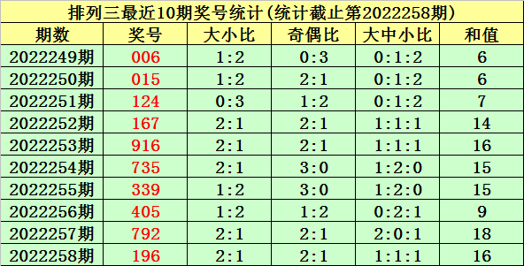 奇偶比分析:上期奇偶比3:3,近5期奇偶比分别为4:2、5:1、5:1、4:2、3:3,总比值为33:27,奇数号码走势较高,本期奇偶比推荐4:2。