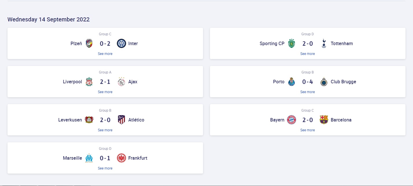 B组的两场对决中,波尔图0:4不敌布鲁日,勒沃库森2:0取胜马德里竞技。