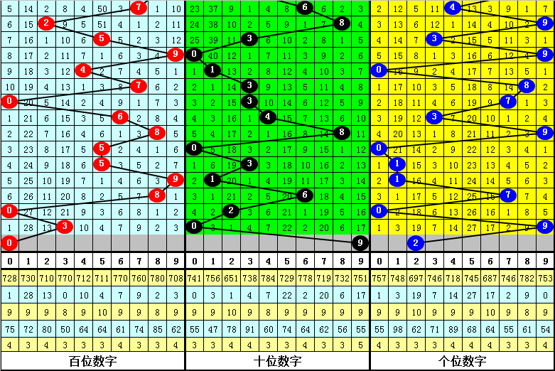 2、奖号质合比分别开出:0:3、0:3、1:2、2:1、1:2、3:0、2:1、3:0、2:1,总质合比开出14:13,其中有2期奖号质合比和上期奖号质合比相等;
