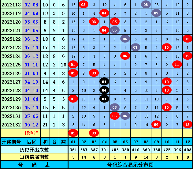 综合分析,第2022133期大乐透前区奖号012路比推荐2:2:1。