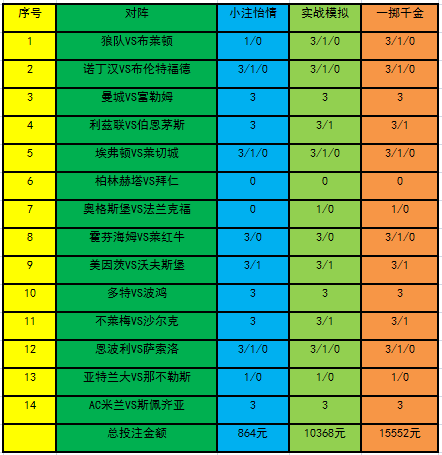 投注策略本期周六的胜负彩由5场英超+6场德甲+3场意甲的比赛组成,本期竞猜难度较大,让步十足的比赛场次虽然有4场,但是让步不足的比赛场次还是较多,且还有部分半一或半球让步的场次,机构并没有给出太多的倾斜,同时,临近世界杯,部分球员的心态上面恐怕会有一定的变化,且连续作战下面,强队的轮换和体能也值得关注,增加了一定的竞猜难度。