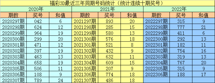 2021305期开奖号码:207;2022305期开奖号码:315