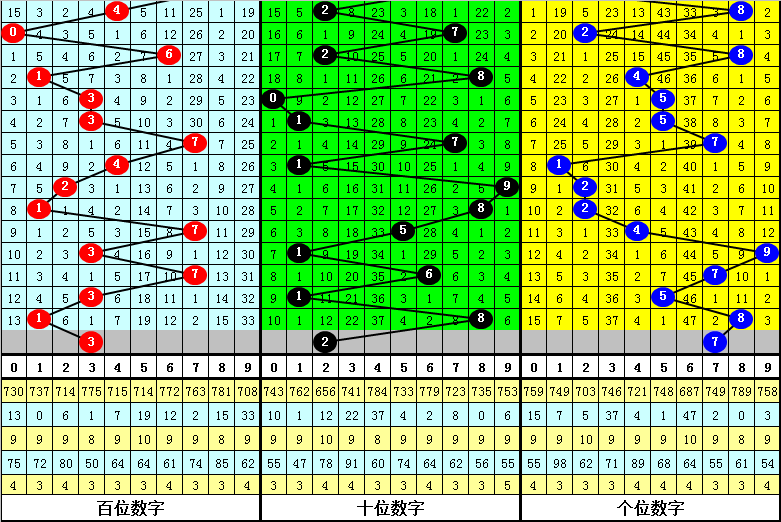 福彩3D上期奖号为188,去年同期与今年同期前20期奖号对比。