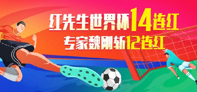 红先生:世界杯预测豪取14连红,昨日荷兰、阿根廷全中,打破个人最长连中纪录!状态火热,值得继续关注![查看今日推荐]