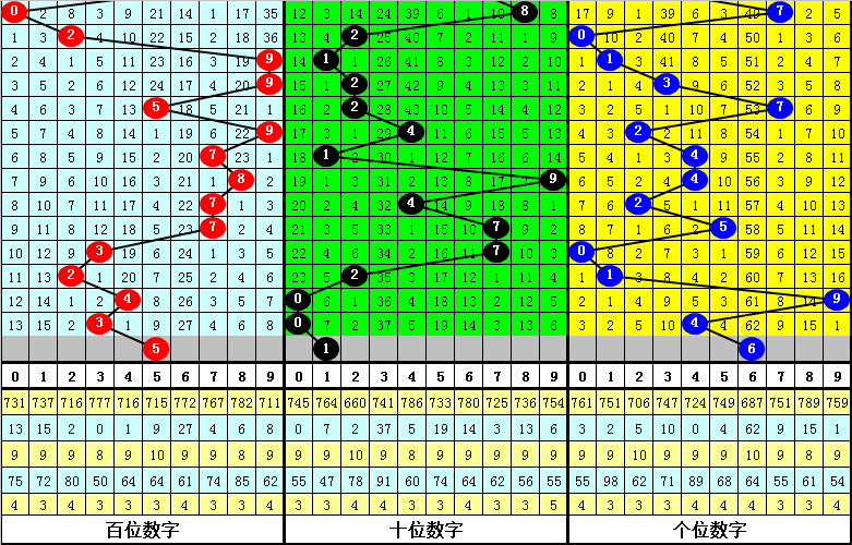 其中,组三出现9次,组六出现10次,单选0-9分别开出: