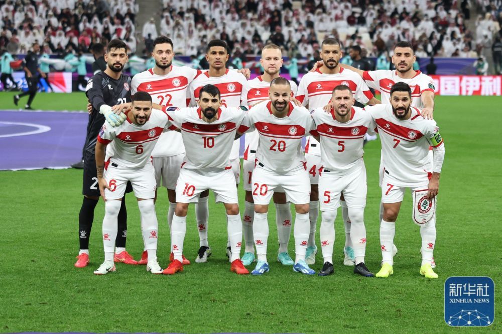 黎巴嫩队首发球员在赛前合影。新华社记者 贾浩成 摄